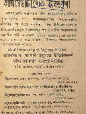 শ্রীঅদ্বৈতাচার্য্যের চরিতসুধা Sri Advaitacharyer Charitasudha