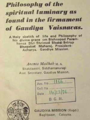 Life Divine & Philosophy of the Spiritual Iuminary as found in the firmament of Gaudiya Vaisnavas