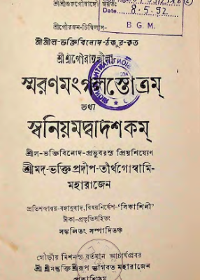 শ্রীশ্রীগৌরাঙ্গলীলা – স্মরণমংগলস্তোত্রম Sri Sri Gaurangalila-Smaranamangalastotram tatha swaniyamadadasakam