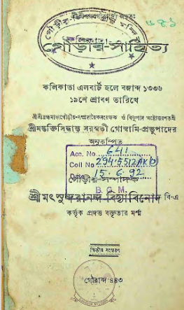 গৌড়ীয় – সাহিত্য Gaudiya Sahitya
