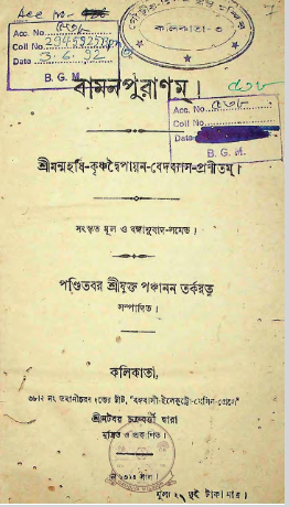 Home / Sacred books (Purans / Scriptures) / বামন পুরাণম্ Vamana Puranam