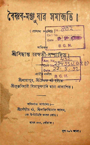 বৈষ্ণব মঞ্জুষার সমাহৃতি (প্রথম সংখ্যা) Vaishnava Manjushar Samahriti (Vol. 1)