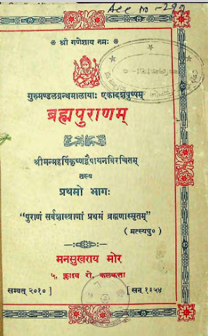 ब्रह्मपुराणम् (प्रथमो भागः) Brahmapuranam (1st Part)