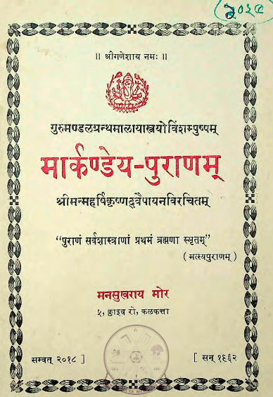 Home / Sacred books (Purans / Scriptures) / मार्कण्डेय-पुराणम् Markandaya Puranam