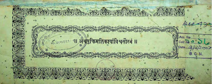 Home / Others / अथ युक्तिमल्लिकायां विश्वसौरभम् Atha Yuktimallikayam Vishwasaurabham