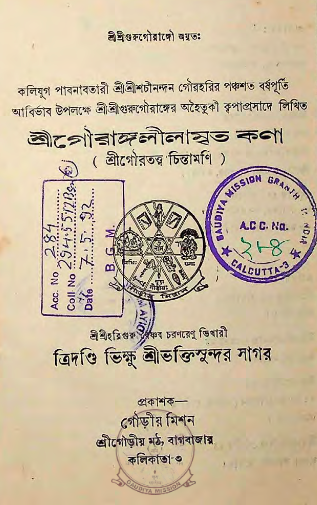 Home / Gaudiya-Darshan / শ্রীগৌরাঙ্গলীলামৃত কণা Sri Gaurangalilamrita Kana