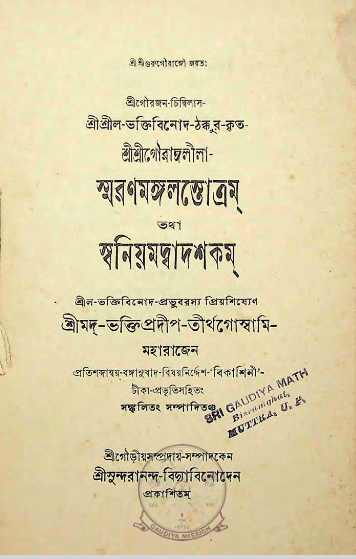 শ্রীশ্রীগৌরাঙ্গলীলা -স্মরণমঙ্গলস্তোত্রম্ স্বনিয়মদ্বাদশকম্ Sri Sri Gaurangalila Smarana Mangala Stotram Tatha Swaniyamadadasakam