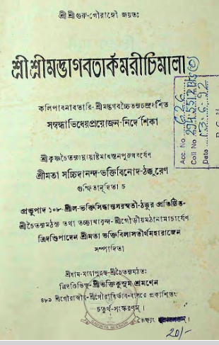 শ্রীশ্রীমদ্ভাগবতার্কমরীচিমালা Sri Srimad Bhagavata tarka maricimala