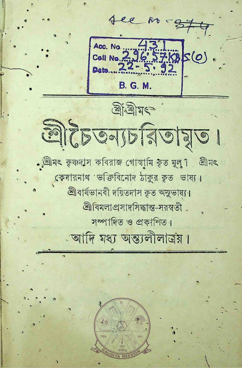শ্রী চৈতন্যচরিতামৃত (আদি, মধ্য ও অন্ত্য লীলা ) Sri Chaitanyacharitamrita (Adi, Madhya and Antya Lila)