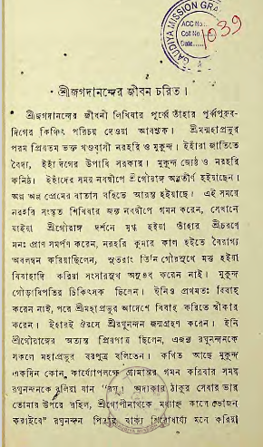 শ্রী জগদানন্দের জীবন চরিত Sri Jagadanander Jibancarita