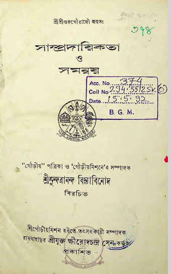 Home / Hinduism / সাম্প্রদায়িকতা ও সমন্বয় Sampradayikata o Samannay