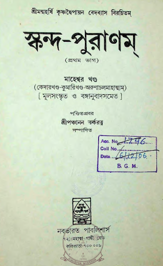 Home / Sacred books (Purans / Scriptures) / স্কন্দ -পুরাণম্ (মহেশ্বর খণ্ড) (প্রথম ভাগ) Skanda-Puranam (Mahesvara Khanda) (1st Part)