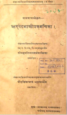 ऋग्वेदभाष्यक्रमणिका Rigvedabhashyakramanika