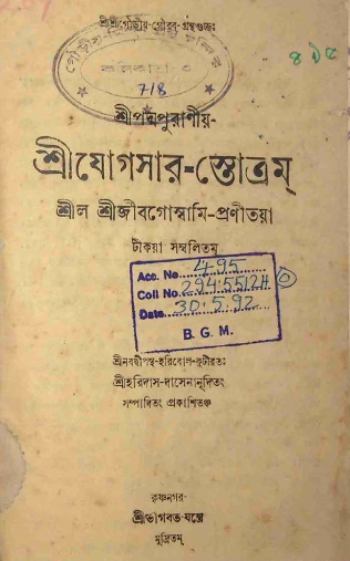 Home / Bhakti / শ্রীযোগসার-স্তোত্রম্ Sri Yogasar-Stotram