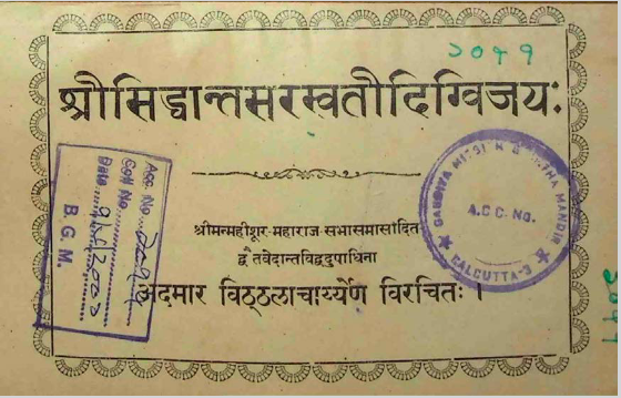श्रीसिद्धान्तसारस्वतीदिग्विजयः Sri Siddhanta Saraswati Digvijayah